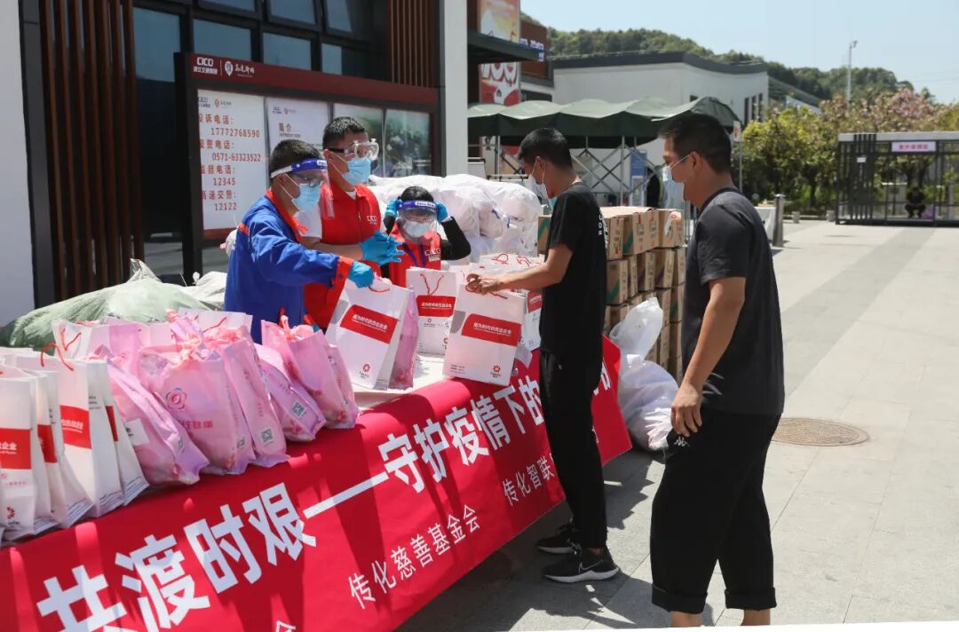 4月9日,在杭州沪昆高速萧山服务区和富阳服务区休息的货车司机,收到了包含自热米饭、火腿肠等食品及消毒液等防疫用品的补给。此批补给共4000份,由传化慈善基金会、浙江省妇女儿童基金会联合捐赠。